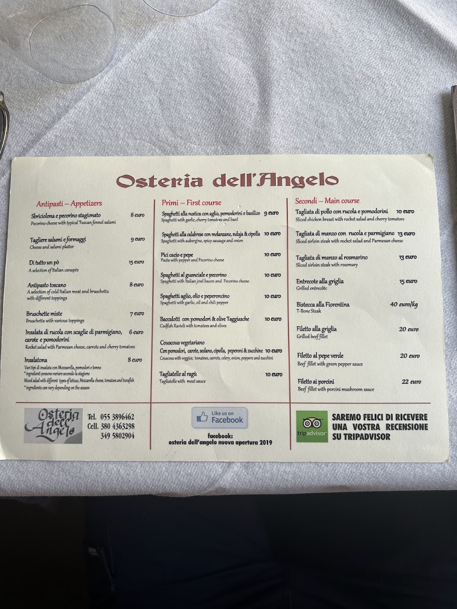 With a cozy ambiance, friendly service, and a head chef who brings joy to the dining experience, Osteria Dell'Angelo is a haven for anyone seeking a taste of authentic Tuscany. Whether you're a local or a traveler, this restaurant promises an unforgettable meal steeped in the essence of la dolce vita.